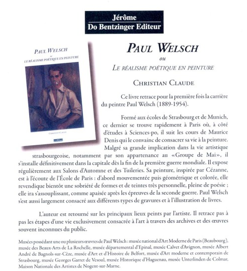 A biography on Paul Welsch (Paul Welsch or poetic realism in painting) was published by Jérôme Do. Bentzinger editor.