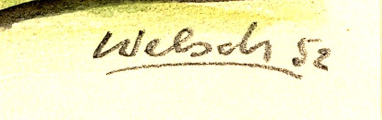 During the war (1939-1941), the works were often signed "Velche" to erase the Germanic origins of the name Welsch. This mainly concerns drawings, watercolors elaborated in the oflags, the artist having hardly had the possibility of painting oils. The signature opposite is taken from a stained-glass window designed at this time.