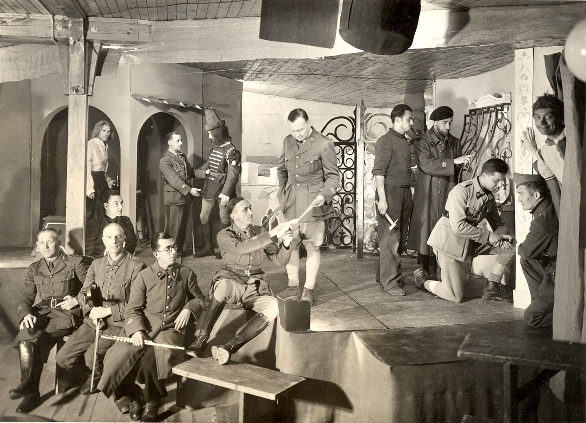 En automne 1941, il est transféré à l'Oflag V.a de Weinsberg. Il y consacre son temps à dessiner les costumes, les décors, les programmes de la troupe théâtrale constituée par les prisonniers : Les Caprices de Marianne de Musset, Les 30 millions de Gladiator de Labiche. Libéré comme ancien combattant français des vieilles classes, il passe par Stuttgart avant de pouvoir rejoindre Paris. Il séjourne la majeure partie du reste de la guerre en Dordogne, à Génis, dans le Périgord vert.
