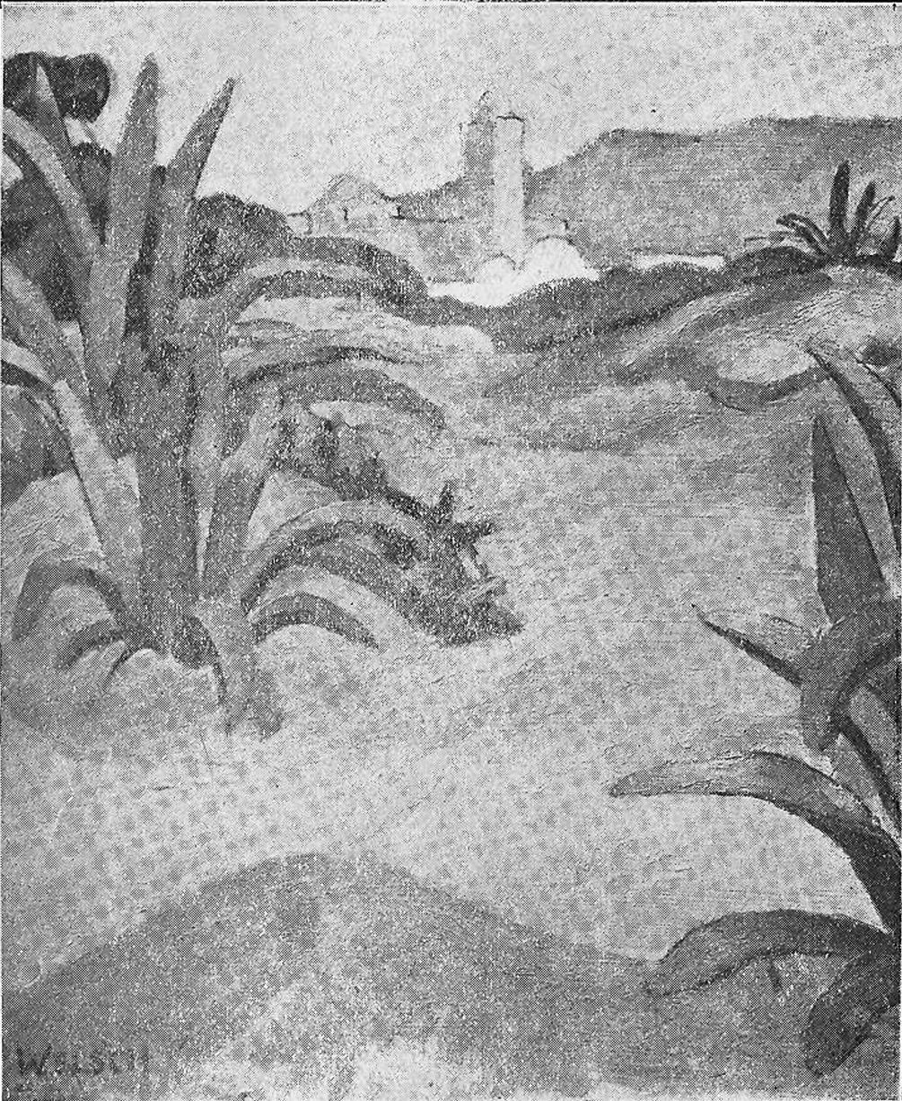 Mars 1926 - Maison d'Art Alscacienne (Strasbourg), exposition Welsch : tableaux dont ceux de la Corse (La goélette dans le port de Bastia, Santa Marione à Corte, Paysage au berger, Porteuse d'eau à Corte, Vieux port de Bastia...), dessins, aquarelles