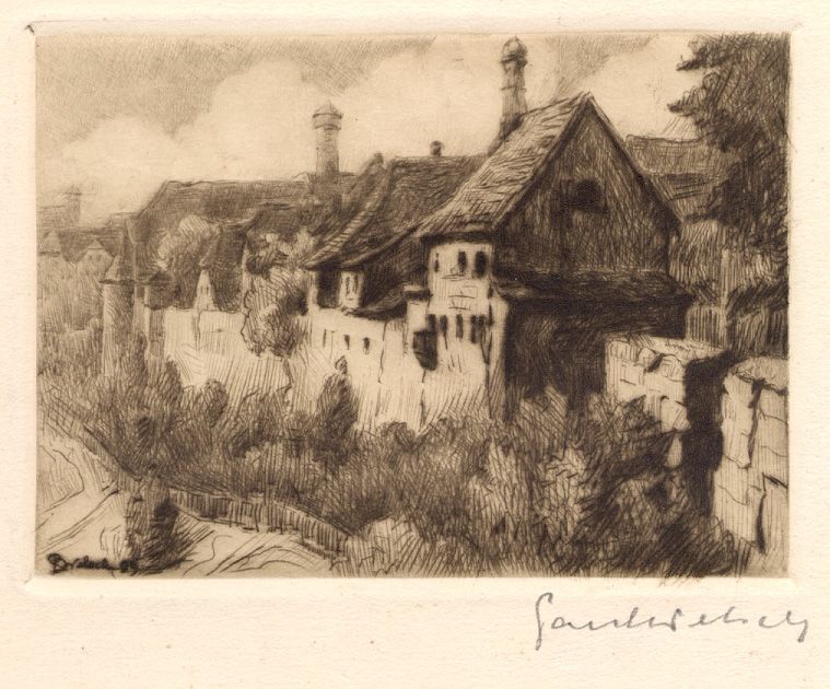 13 mai - 10 juin 1922 - Musée historique (Pont du Corbeau) : Maisons à Villeneuve-Loubet, Rosenwiller, Rosheim (porte des Lions), Rosheim (appartient à M. Ch. Schn.), Jeune fille à la fenêtre, Nature morte, Les tulipes, Bouquet de fleurs (aquarelle), 4 dessins